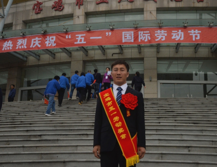 4月30日,寶雞市勞動(dòng)者之歌暨慶祝“五一”國(guó)際勞動(dòng)節(jié)大會(huì)勝利召開(kāi),公司劉延強(qiáng)同志被授予“寶雞市五一勞動(dòng)獎(jiǎng)?wù)隆惫鈽s稱(chēng)號(hào),公司在總部辦公樓前舉行了簡(jiǎn)樸隆重的歡迎儀式。公司副董事長(zhǎng)、總經(jīng)理胥立,黨委書(shū)記景旭東,工會(huì)主席王建成等出席儀式,總部全體、寶雞文化藝術(shù)中心項(xiàng)目部管理人員參加。