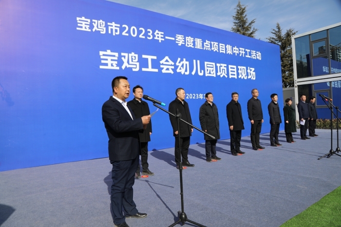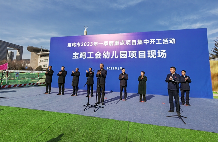 1月28日,寶雞市2023年一季度重點(diǎn)項(xiàng)目集中開工活動(dòng)在集團(tuán)公司承建的寶雞市總工會(huì)幼兒園項(xiàng)目現(xiàn)場(chǎng)舉行,市委書記楊廣亭下達(dá)開工令,市長(zhǎng)王勇、市人大常委會(huì)主任景耀平、市政協(xié)主席劉榮賢、市委副書記段小龍參加活動(dòng)。市委常委、常務(wù)副市長(zhǎng)賈珉亮主持開工活動(dòng)。市人大常委會(huì)副主任、市總工會(huì)主席陳小平介紹項(xiàng)目情況。
