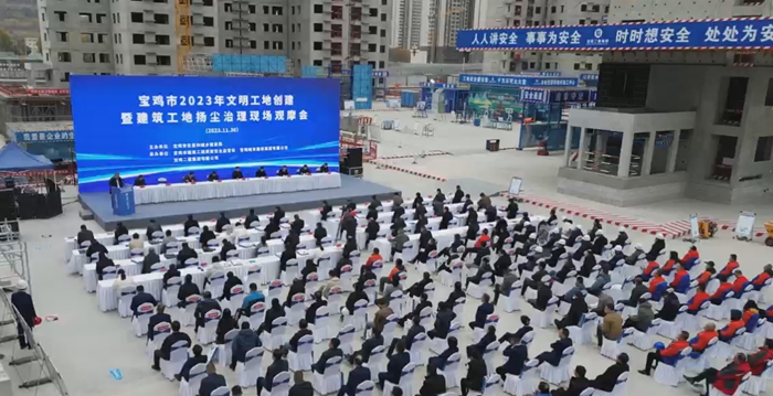 11月30日,由寶雞住房和城鄉(xiāng)建設(shè)局主辦的2023年文明工地創(chuàng)建暨建筑工地?fù)P塵治理現(xiàn)場觀摩會在集團公司承建的龍豐村安置房建設(shè)項目現(xiàn)場召開。此項目是全省遴選的26個文明工地示范項目中,寶雞地區(qū)唯一入選的觀摩項目。