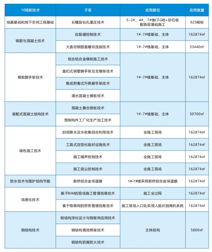 應(yīng)用建筑業(yè)十項新技術(shù)共10大項、21子項。