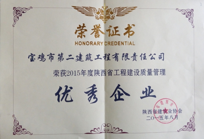 2015年度陜西省工程建設質量管理優(yōu)秀企業(yè)