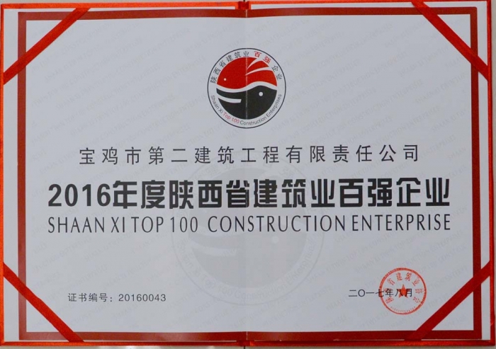 2016年陜西省建筑業(yè)百強(qiáng)企業(yè)